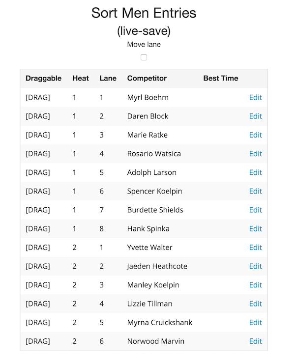 • Have the system pre-assign competitors to heats/lanes based on their entered best times